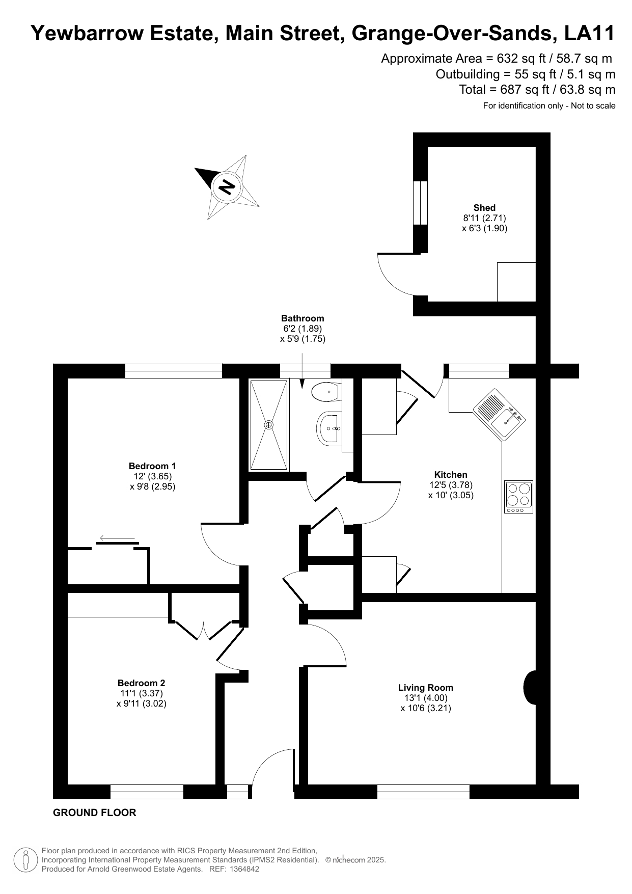 Bedroom 1 9' 8" x 12' 0" (2.95m x 3.65m)