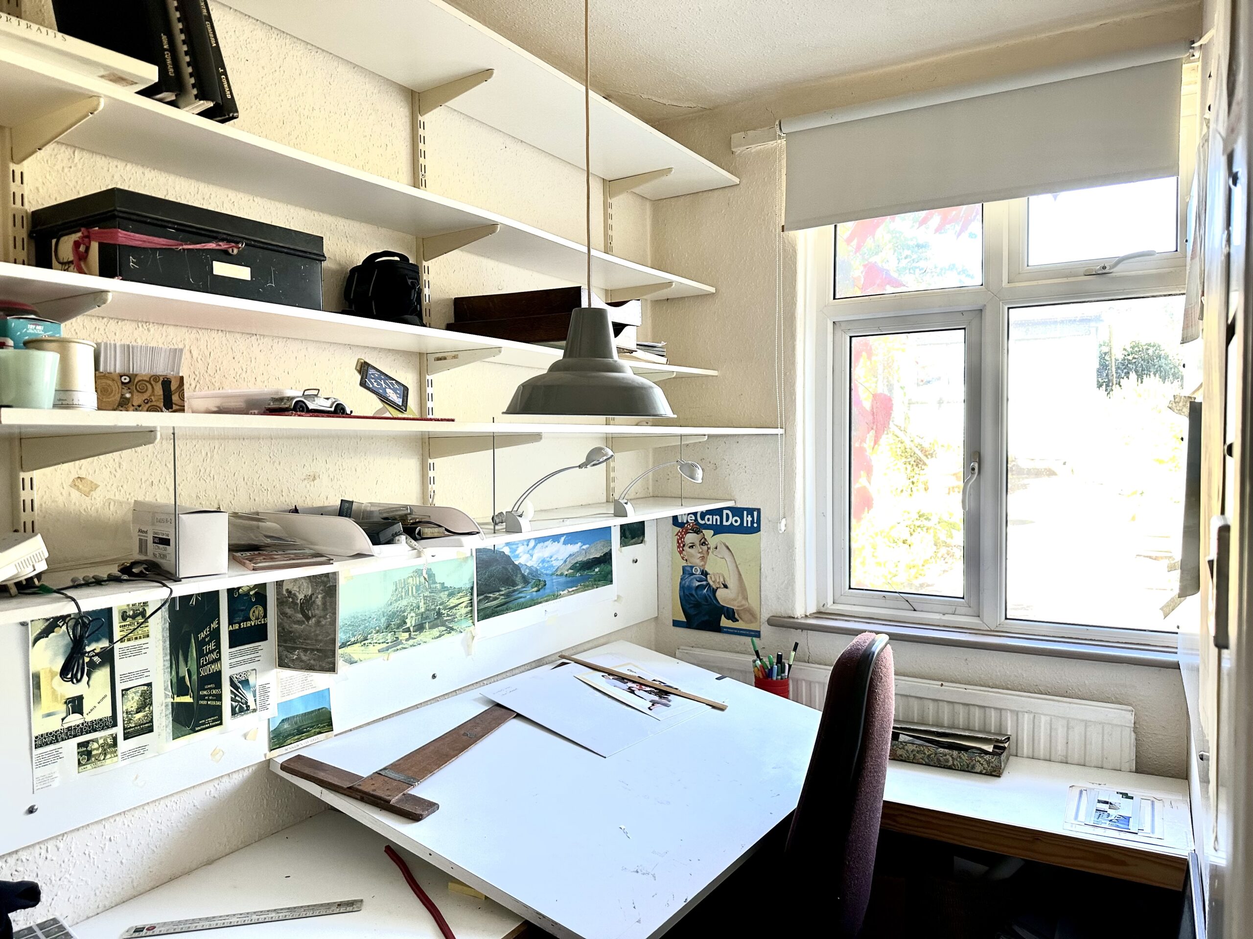 Offering a space fitted for working from home. Pendant featured lighting, rear garden windows and wall mounted storage.