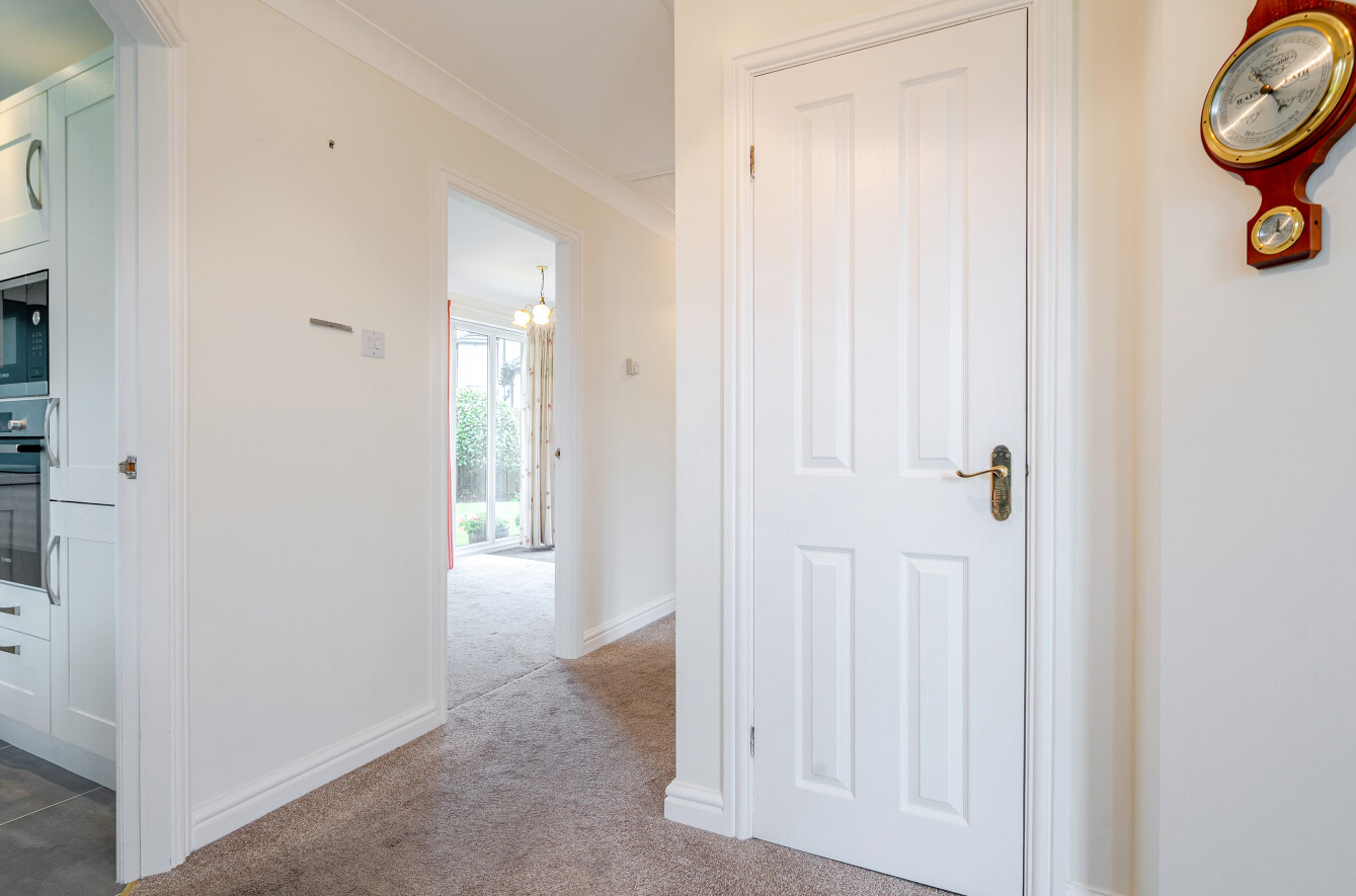 Step outside to enjoy the beautifully landscaped garden, complete with manicured lawns, mature shrubs, and vibrant flower beds. Multiple patio and seating areas invite relaxation or al fresco dining, while French glass doors provide seamless indoor-outdoor living. The bungalow is set on a desirable corner plot within a quiet cul-de-sac, further benefiting from a integrated garage, and off-road driveway parking. This is a superb opportunity for buyers seeking a well-presented, move-in-ready home with private outdoor space and excellent kerb appeal. No Chain.