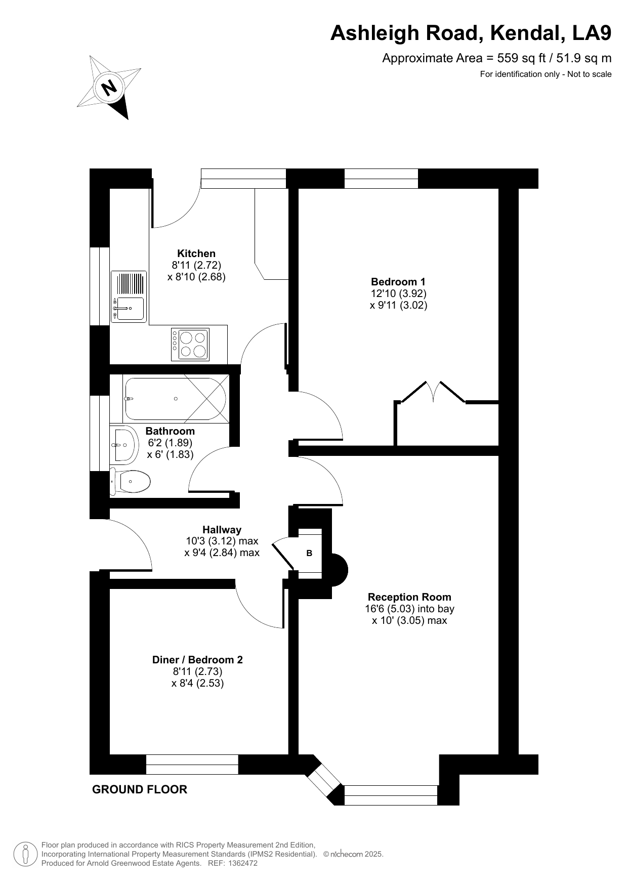Diner / Bedroom 2 8' 4" x 8' 11" (2.53m x 2.73m)