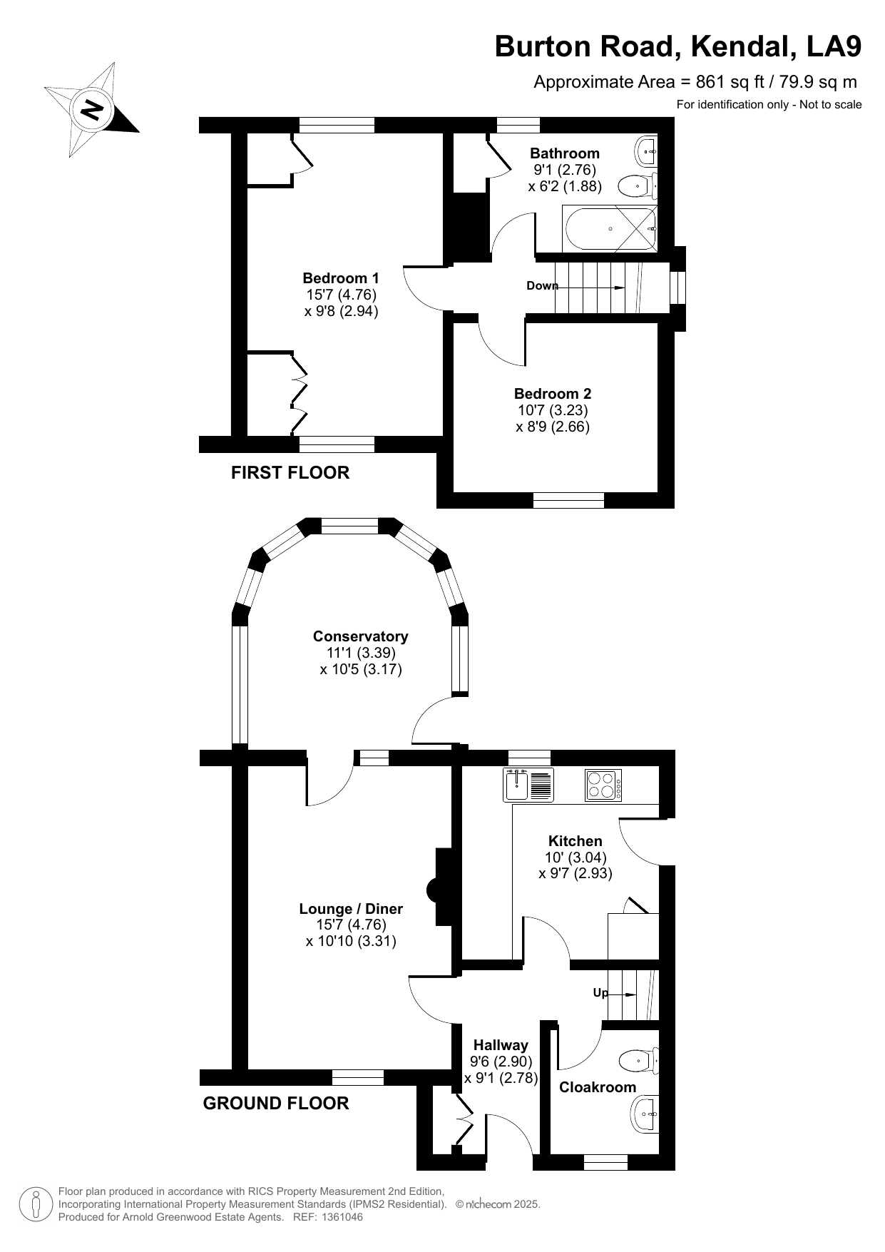 Bedroom 1 15' 7" x 9' 8" (4.76m x 2.94m)