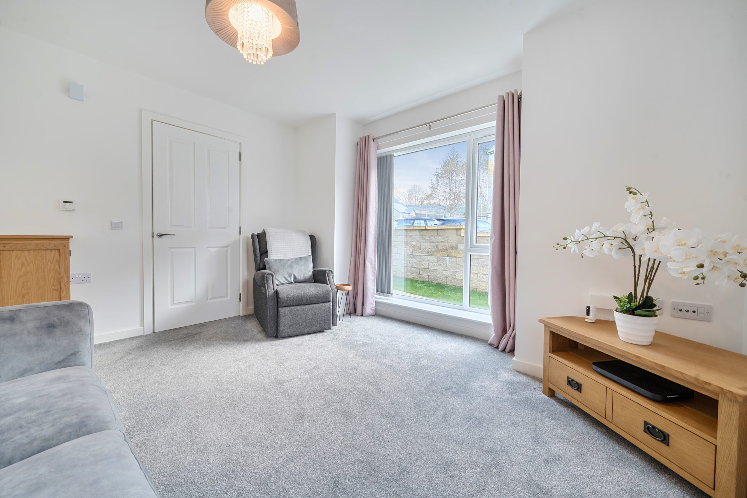 Newly constructed (for 2022) the property boasts a modern design with a stone exterior complemented by large windows that flood the interiors with natural light. Step inside to discover a generous entry hallway offering access to storage cupboards, two well-proportioned bedrooms with ample space for storage, a modern kitchen complete with integrated appliances, and a open plan living and dining area with outside access. The property also features a sleek walk-in shower, upgraded carpets throughout, and a private garden. Residents can enjoy independent living while having the convenience of onsite support staff, cafe and hairdressers at their fingertips. This residence offers a perfect blend of contemporary living and rural tranquillity.
