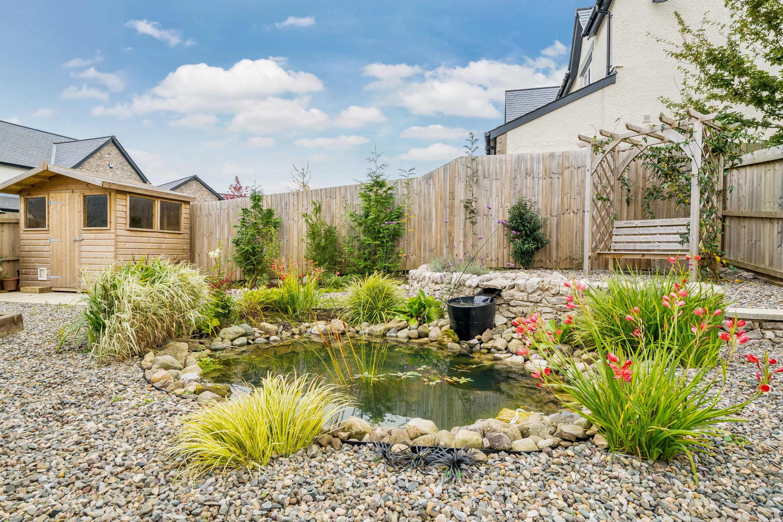 Outside, the property sits amidst a tranquil modern development with scenic countryside views, landscaped front and rear gardens, and a central pond surrounded by lush greenery. Ample off-road parking is provided by a double garage and spacious driveway. Additional highlights include multiple reception rooms, neutral decor throughout, built-in storage solutions, and a patio area perfect for relaxation or alfresco dining. This home combines modern luxury with peaceful surroundings, offering the perfect retreat for families seeking style, comfort, and convenience.