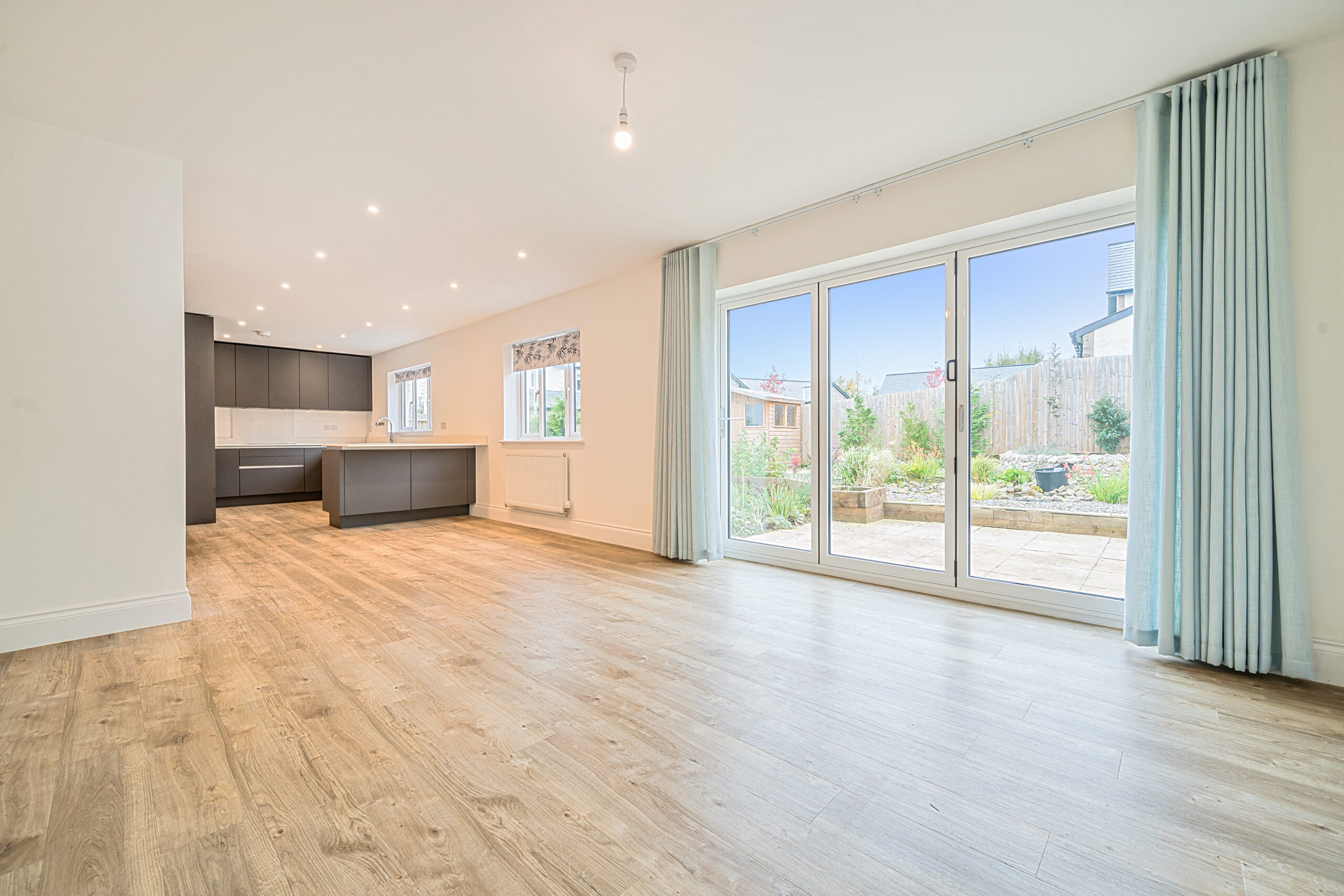 This impressive five-bedroom detached house showcases contemporary design, generous proportions, and a wealth of high-specification features throughout. The property offers spacious open plan living, with a modern kitchen and integrated appliances, seamlessly flowing into a bright living area enhanced by large windows and wooden flooring. Bi-fold doors connect the main living space to a beautifully landscaped garden, creating a harmonious indoor-outdoor experience ideal for family life and entertaining. The principal bedroom benefits from a walk-in wardrobe, and three modern bathrooms feature sleek showers, elegant wood-effect flooring, and stylish fixtures.