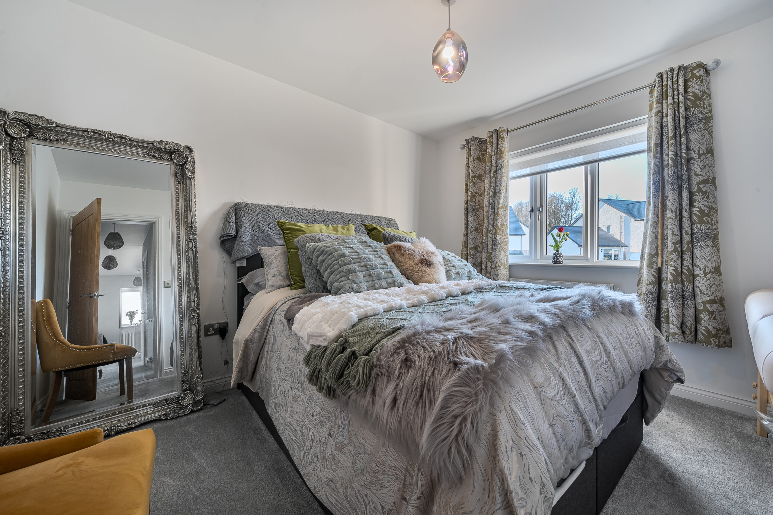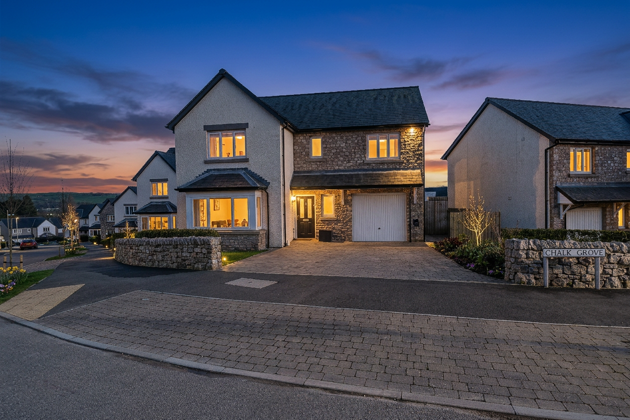 Presenting this impressive four bedroom detached house, situated in a highly sought after location and offering an exceptional blend of modern living and timeless comfort. This spacious home welcomes you with a generous entrance hall, leading into an expansive open plan kitchen living area, perfectly designed for both family life and entertaining. The modern kitchen features high quality integrated appliances, sleek cabinetry, and ample workspace, making it ideal for culinary enthusiasts. The living and dining space is flooded with natural light, thanks to the striking bi-fold doors (which create a seamless connection to the outdoors and enhance the sense of space). Each of the four bedrooms is well proportioned, providing flexible accommodation for families, guests, or working from home. The principal bedroom benefits from scenic countryside views and a luxurious en-suite bathroom, complete with a walk-in shower. The additional bedrooms are served by a stylish family bathroom with both a bath-tub and a separate walk-in shower. Throughout the property, tasteful décor and high quality finishes create an inviting atmosphere, while practical features such as ample storage and a utility area add to every-day ease. The integrated garage offers secure parking and further storage options, complemented by additional off-road driveway parking for multiple vehicles. This home is ideally positioned to capture picturesque views of the surrounding countryside, providing a tranquil backdrop. With its blend of spacious interiors, modern amenities, and a prime location, this detached house presents an opportunity to acquire a stylish and versatile family home. Early viewing is highly recommended to appreciate the quality and lifestyle on offer.