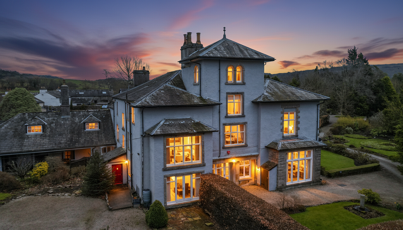 This exceptional five-bedroom former manor house offers a rare opportunity to acquire a piece of local history, built for the Grayrigge family ancestors in 1710 (Henry Fletcher). Set within the tranquil semi-rural hamlet of Field Broughton and bordering the picturesque, medieval village of Cartmel (renowned for its Michelin-star dining and racecourse), the property showcases charming period architecture throughout, with original features and elegant proportions that reflect its distinguished heritage. The grand entry hallway welcomes you with an impressive original porch entrance with feature staircase, setting the tone for the generous accommodation arranged over four floors, including a versatile basement or cellar level that provides ample storage or potential for further development. The ground floor boasts two inviting reception rooms, comprising a spacious drawing room and a formal dining room, each enjoying direct access to the gardens and featuring log burning stoves for a warm and welcoming atmosphere. The modern fitted kitchen is complemented by a separate pantry, offering both style and practicality with outside access to the cottage garden. Upstairs, five well-proportioned bedrooms provide flexible accommodation for a growing family or visiting guests, while a large family bathroom suite and a smaller W.C suite, ideally situated to the first floor provide convenience to the upper floors. Numerous storage solutions offered thoughtfully integrated throughout the home. The property’s substantial plot includes established woodland areas, mature planting, and a charming walled garden, as well as a double garage and a kitchen garden for those with a passion for gardening or outdoor pursuits. Additionally you will find two separate driveways with ample parking. This characterful residence combines the best of country living with convenient access to local amenities, fine dining, horse racing and scenic countryside walks. Blending period charm with modern comforts, this unique home presents an exceptional lifestyle opportunity in one of Cumbria’s most sought-after locations.