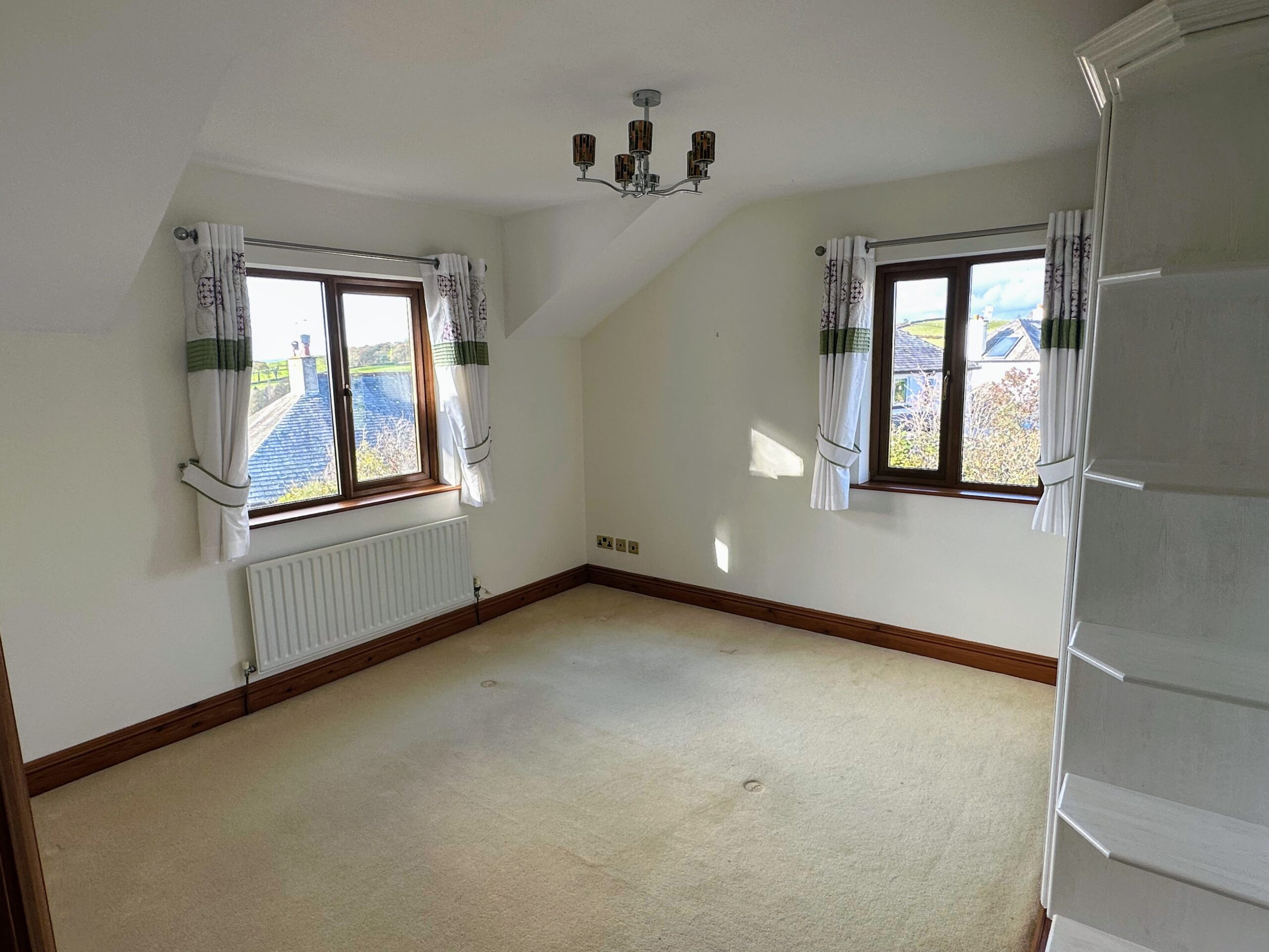 Double Bedroom, with views out to the Cartmel Peninsula and Morecambe Bay. Built in storage and shelving, radiator, tv and phone points.