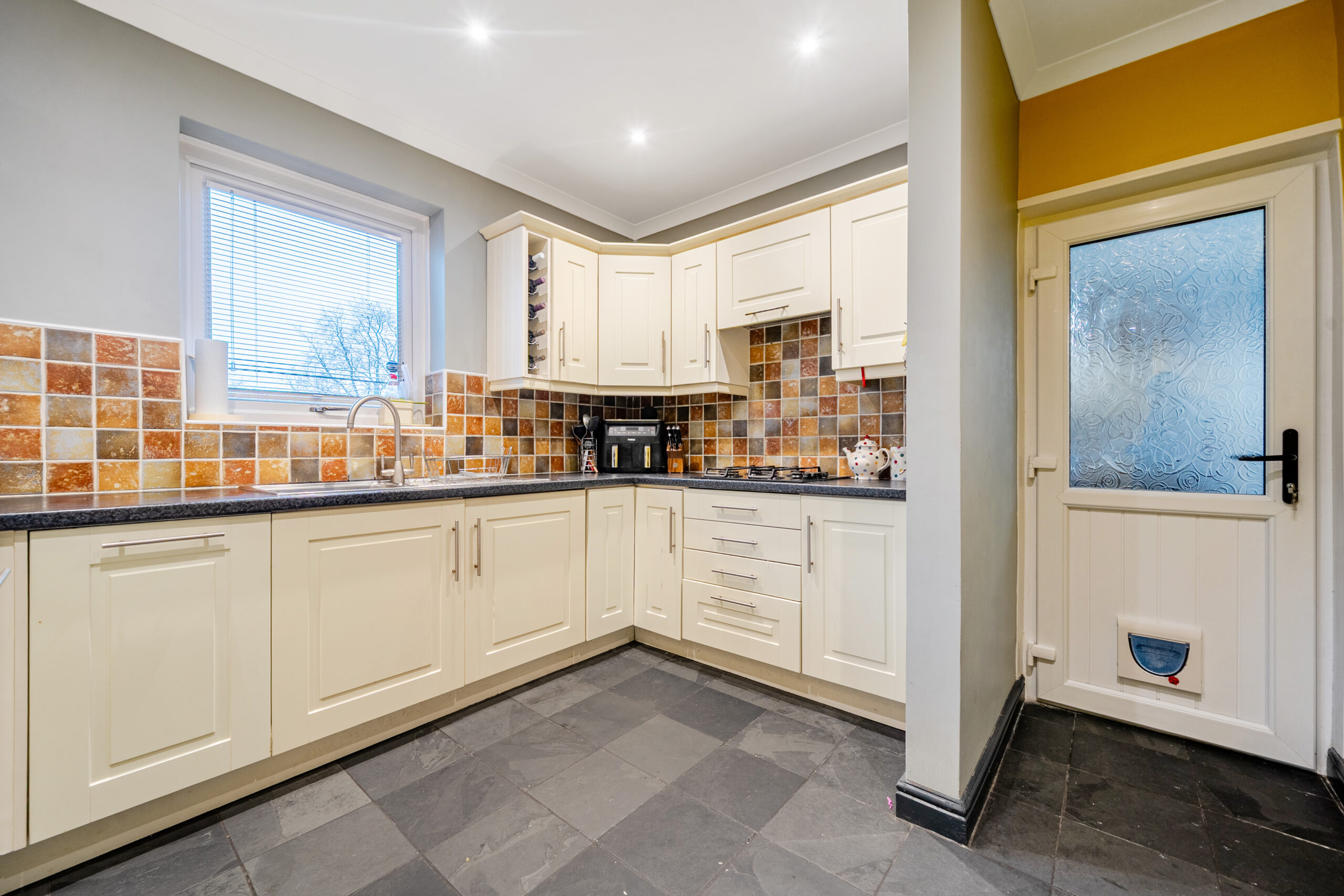 This impressive three-bedroom, two-bathroom semi-detached house offers spacious, modern living ideal for families or professionals seeking comfort and style. The property welcomes you with a contemporary front porch and convenient off-road parking on a large driveway, providing practicality from the outset. Step inside to a bright, welcoming hallway. The kitchen is a true highlight, boasting modern cream and white cabinetry, vibrant tiled backsplashes, and integrated appliances including a double oven and gas hob. The open-plan design seamlessly connects to a spacious dining area, offering an inviting space for entertaining and family gatherings.