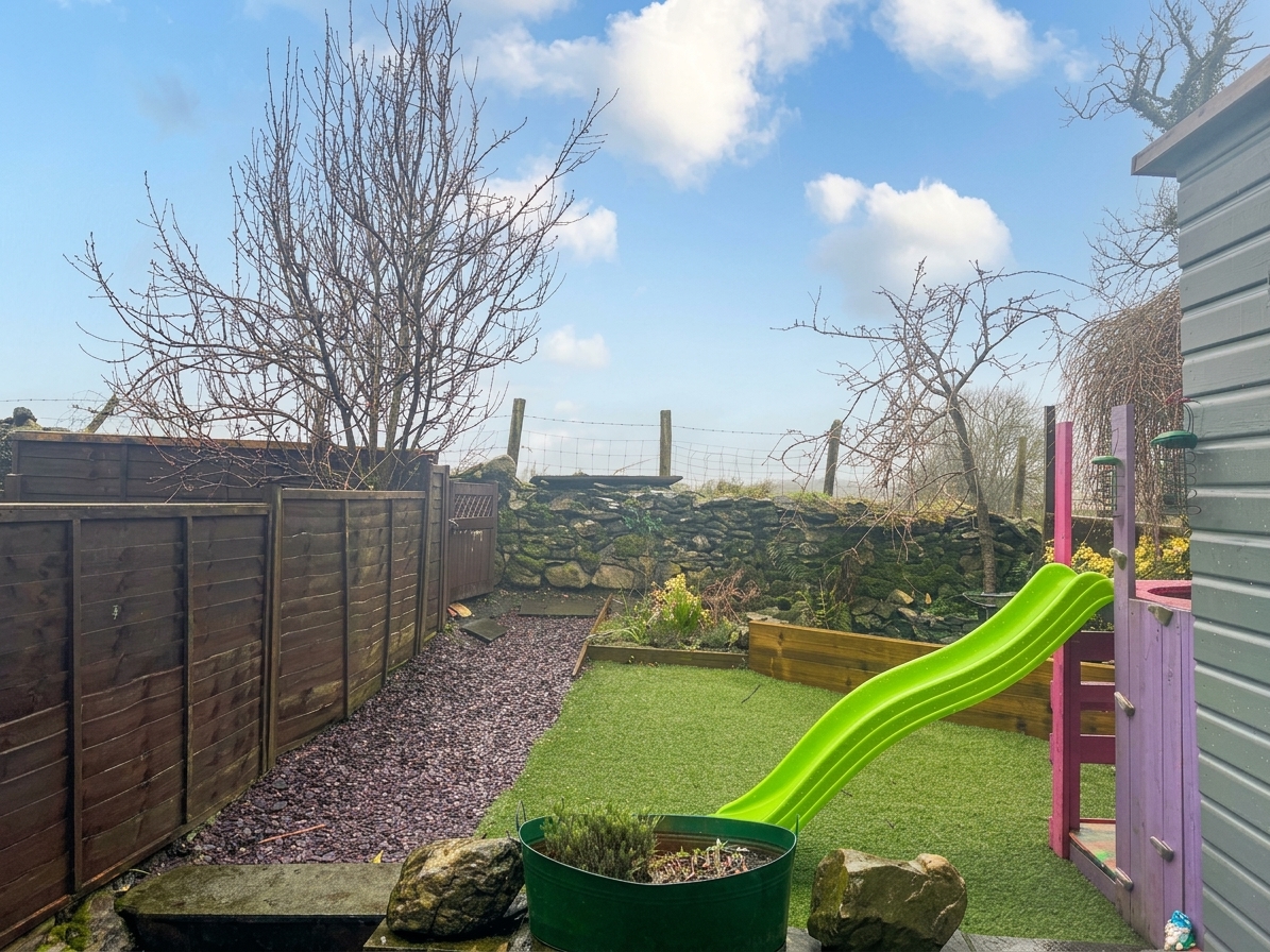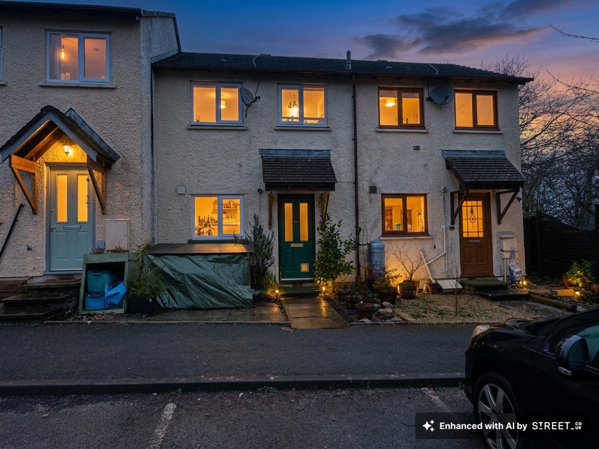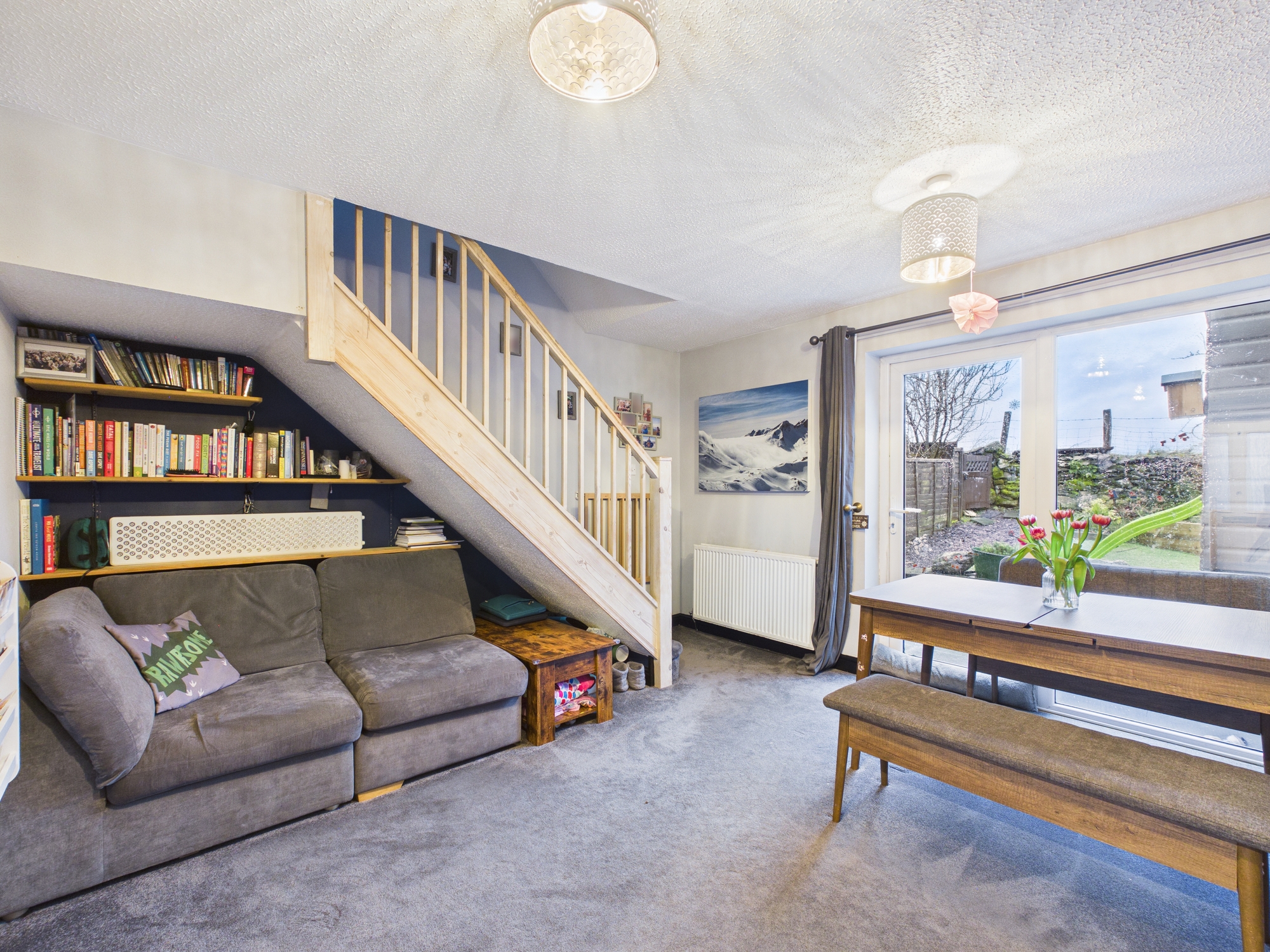 This beautifully presented two-bedroom, one-bathroom mid-terraced house offers a harmonious blend of contemporary style and practical living. The heart of the home is the bright and inviting open plan living and dining area, seamlessly connected by glass sliding patio doors that provide direct access to the charming garden. This space is thoughtfully designed with built-in shelving, under-stair storage, and a staircase that adds character to the interior. The kitchen features deep blue cabinetry, integrated appliances and open shelving for additional storage. Windows throughout the property flood each room with natural light, creating a warm and welcoming ambience in every corner.