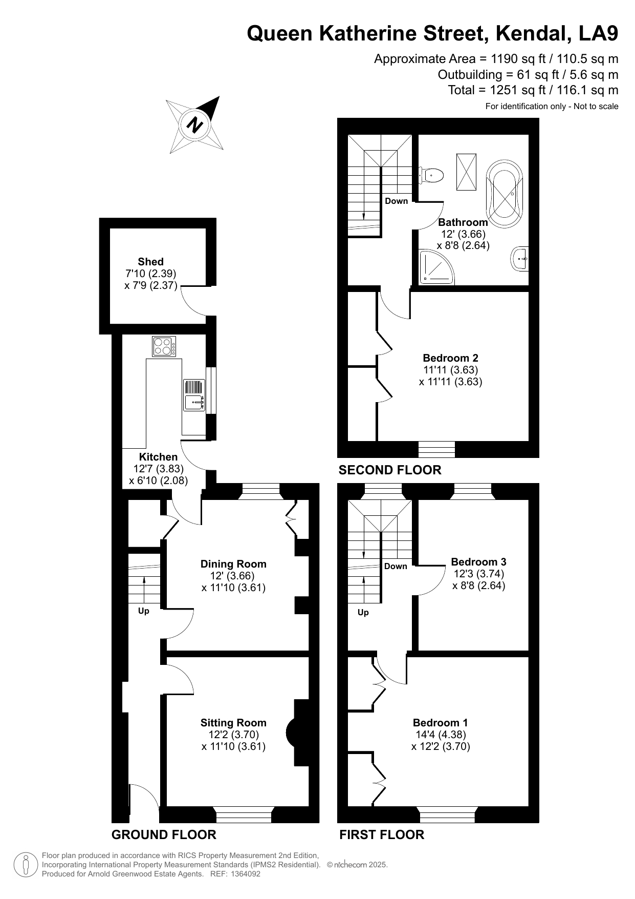 Bedroom Three 12' 3" x 8' 8" (3.74m x 2.64m)