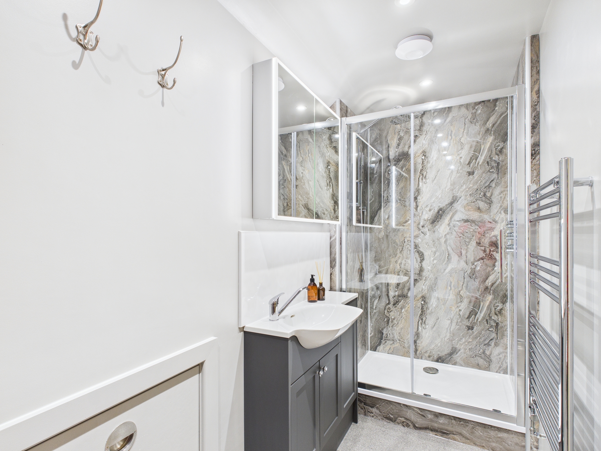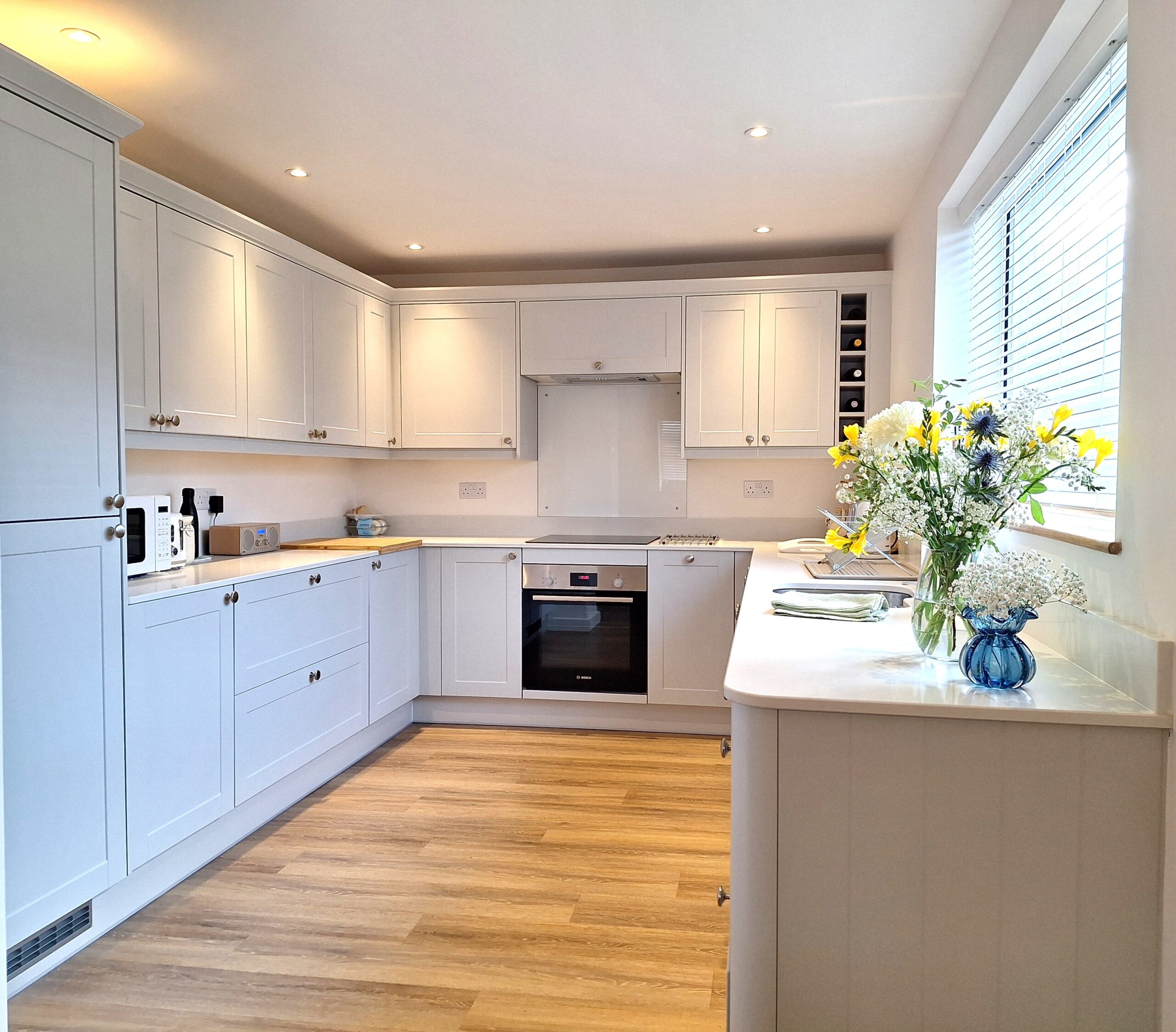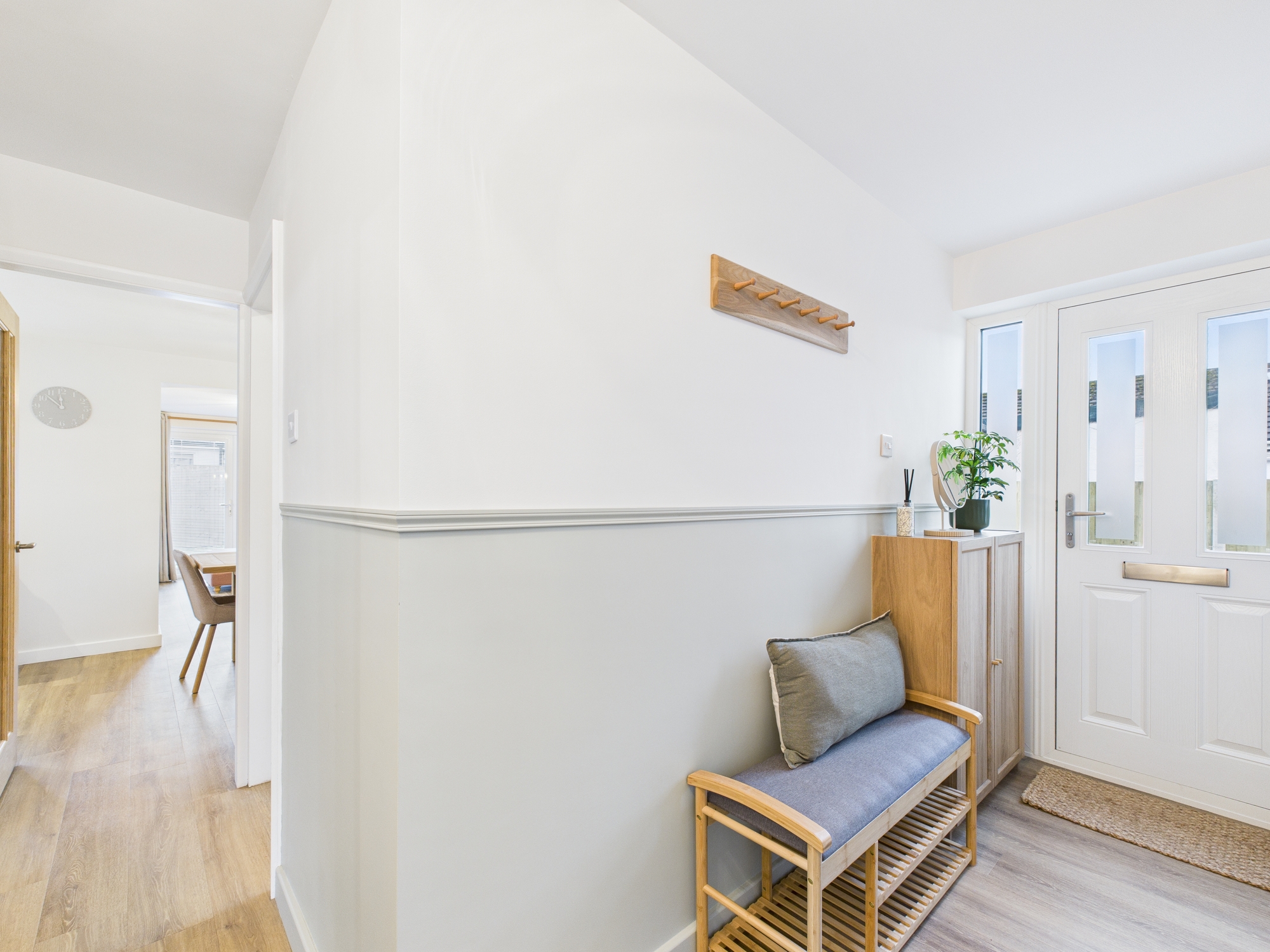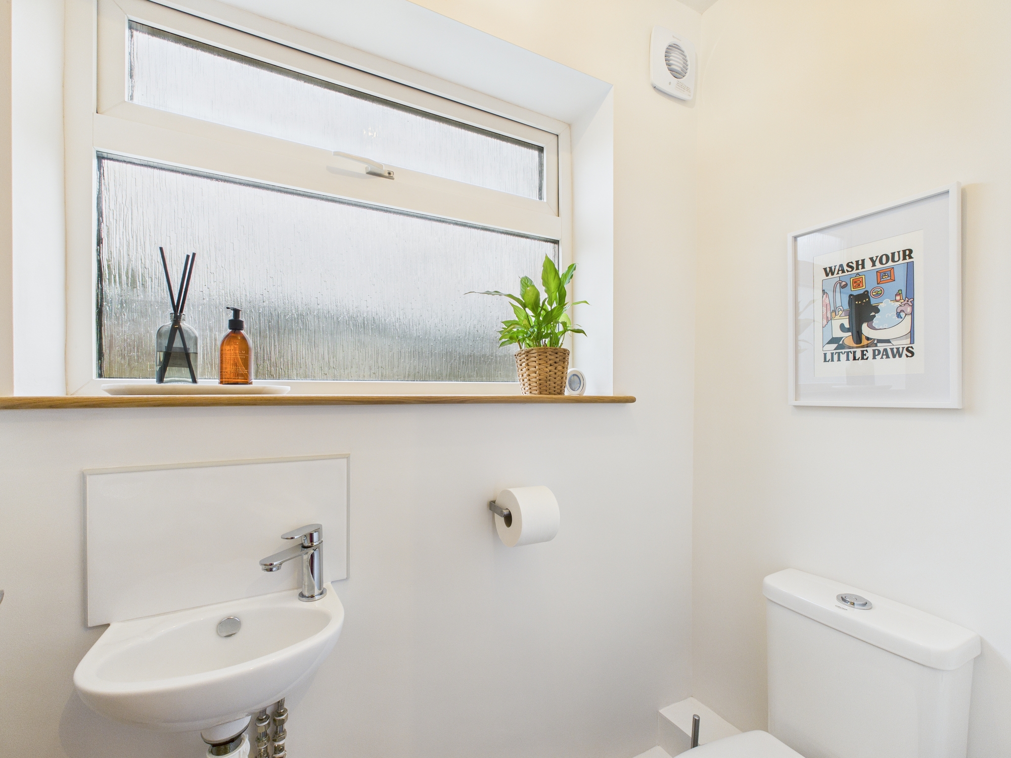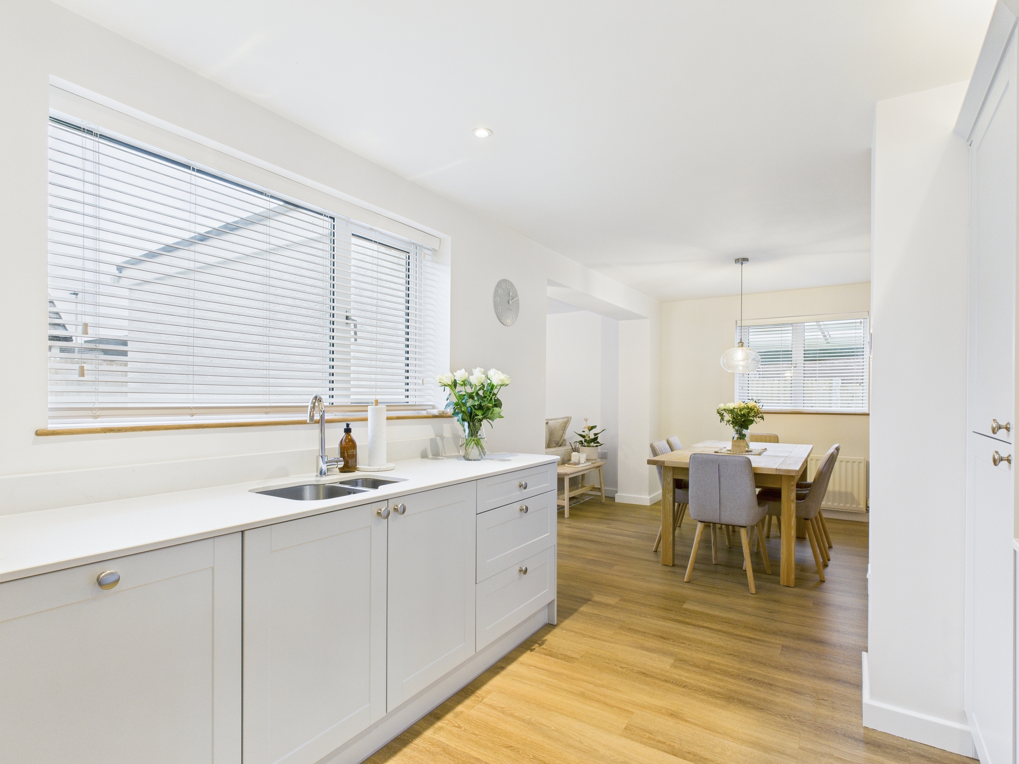 This beautifully presented three-bedroom, one-bathroom semi-detached house offers a harmonious blend of modern design and practical living. Upon entry, you are welcomed by a modern door with frosted glass panels, a bright hallway with sleek Amtico LVT flooring and practical storage, setting the tone for the rest of the home. A contemporary staircase with carpeted steps leads to the upper floor. The open plan living and dining area is thoughtfully designed with abundant natural light, Amtico LVT flooring and built-in storage units. French doors seamlessly connect the living space to the garden, creating a perfect setting for indoor-outdoor living. The modern kitchen is a standout feature, boasting shaker-style light grey cabinetry and quartz worktops, integrated appliances, and a spacious open plan layout that flows into a cosy dining area - ideal for family meals or entertaining guests. Each bedroom is generously proportioned, featuring large windows that flood the rooms with natural light. The bathroom impresses with contemporary fixtures, a luxurious walk-in shower with marble effect walls, a chrome heated towel rail, and under-sink storage, all enhanced by minimalist design and spot lighting that create a bright and refreshing ambience. Additional benefits of this property include a dedicated utility area along with a well appointed home office. Modern lighting fixtures throughout the property and along with stylish decor and accent walls, add a touch of sophistication and warmth. Every detail has been carefully considered to maximise comfort, style, and functionality, making this semi-detached house an exceptional choice for buyers seeking a contemporary and versatile family home.