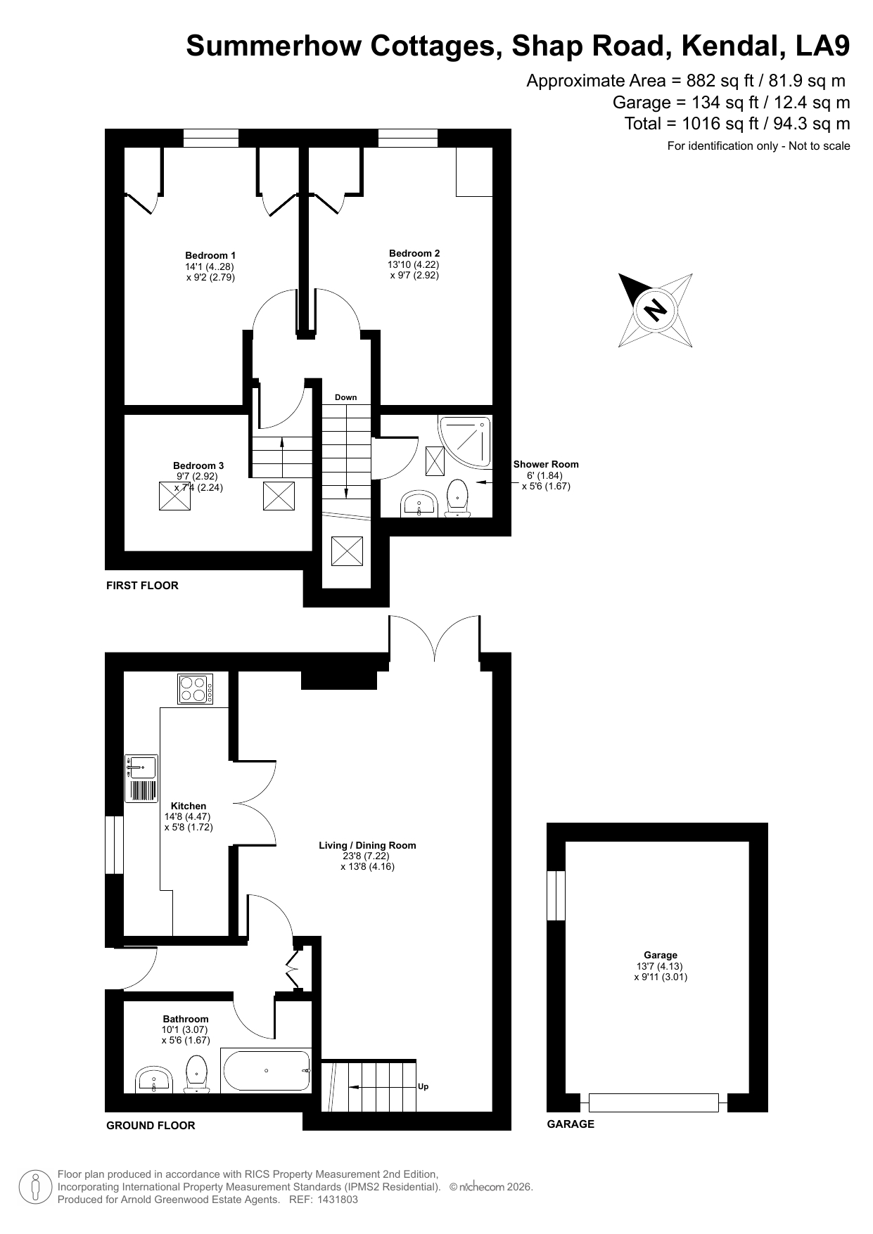 Garage 13' 7" x 9' 11" (4.13m x 3.01m)