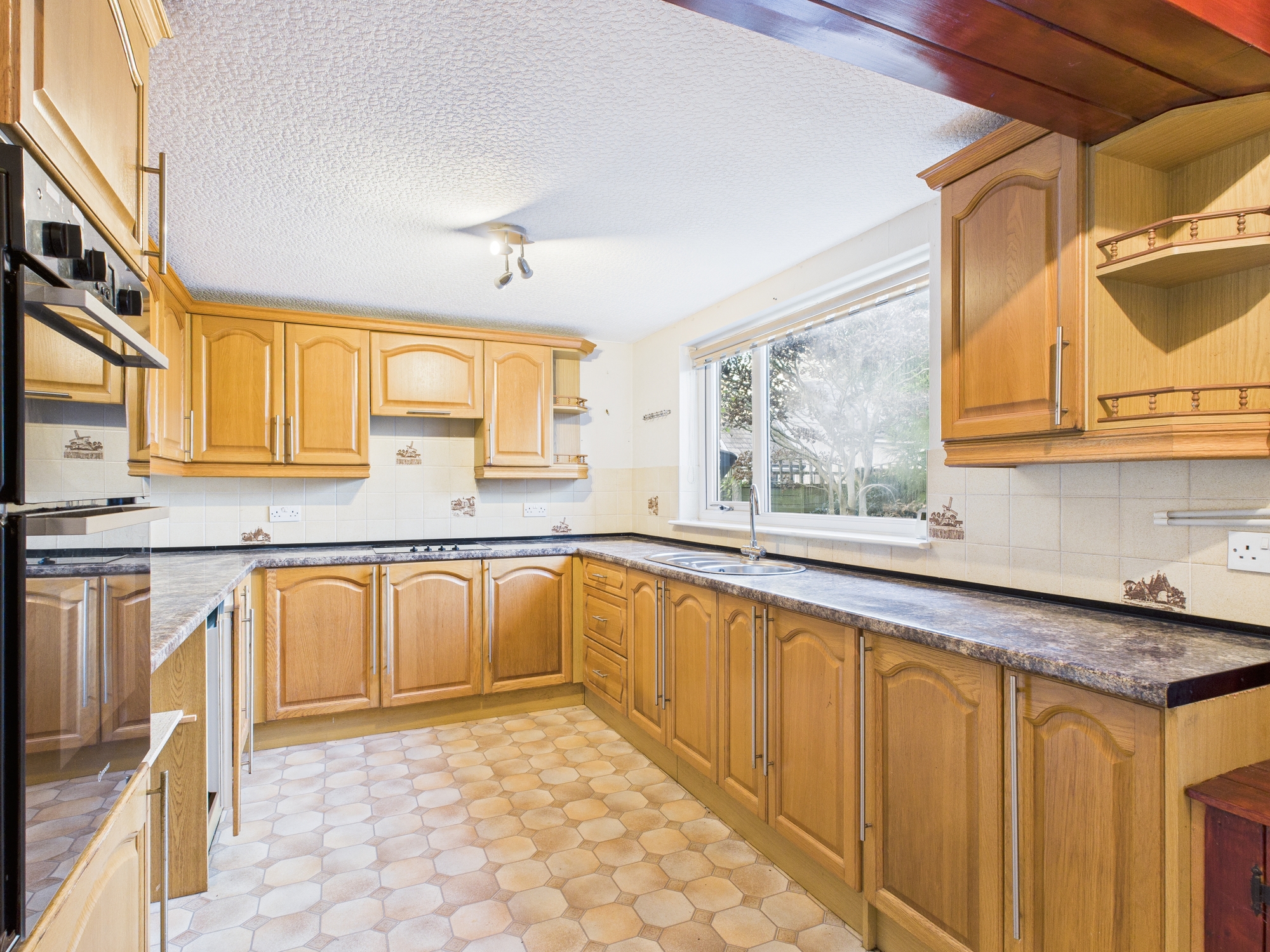 Breakfast kitchen has a door leading to the dining room and a door leading into the sunroom. This is a generous kitchen with plenty of units and complimentary work tops, built-in double oven, Belling induction hob with extractor fan over, space for upright fridge freezer and a stainless steel kitchen sink with window looking out onto the rear garden.