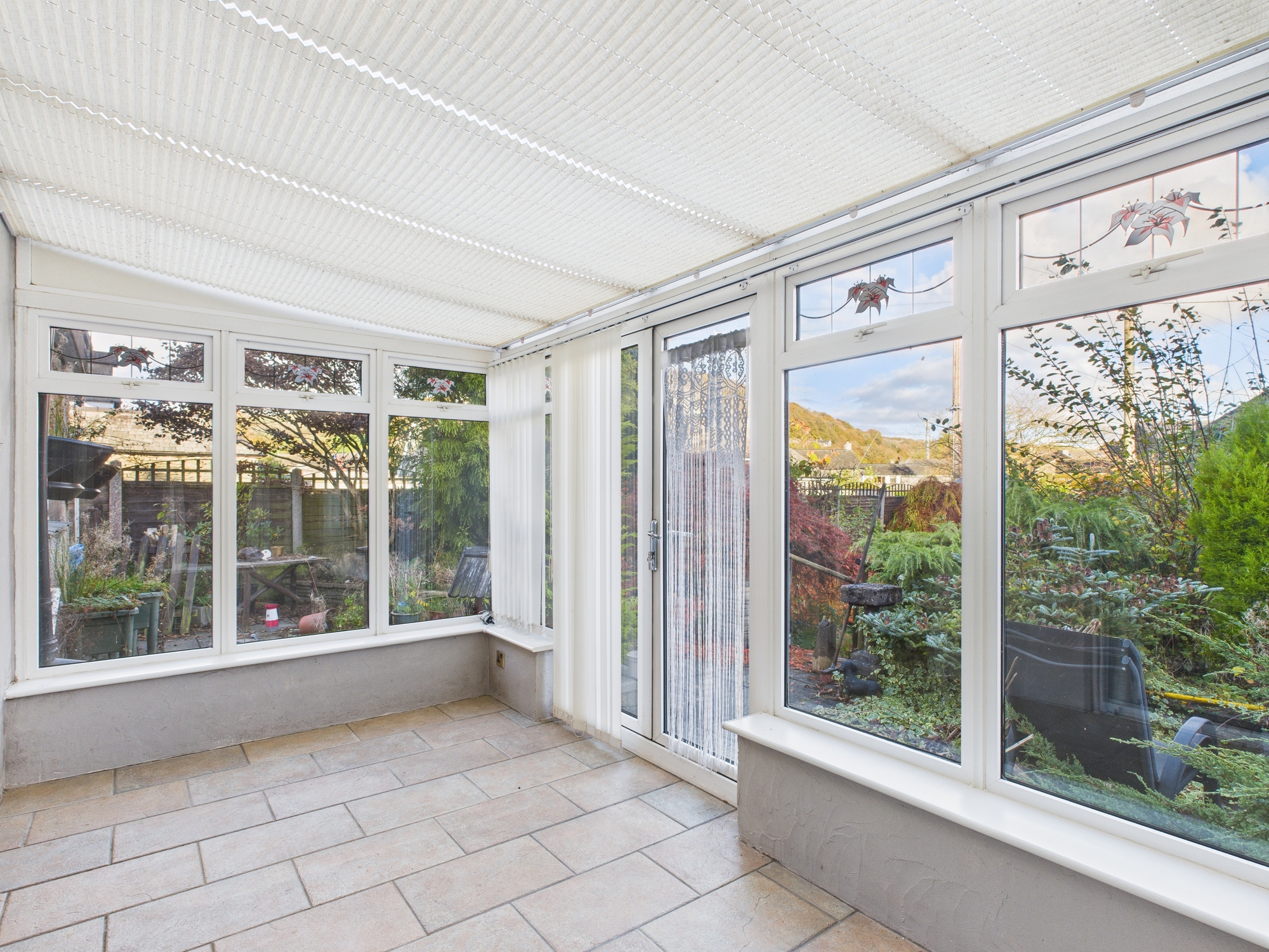 A lovely bright sunroom looking out onto the rear garden.