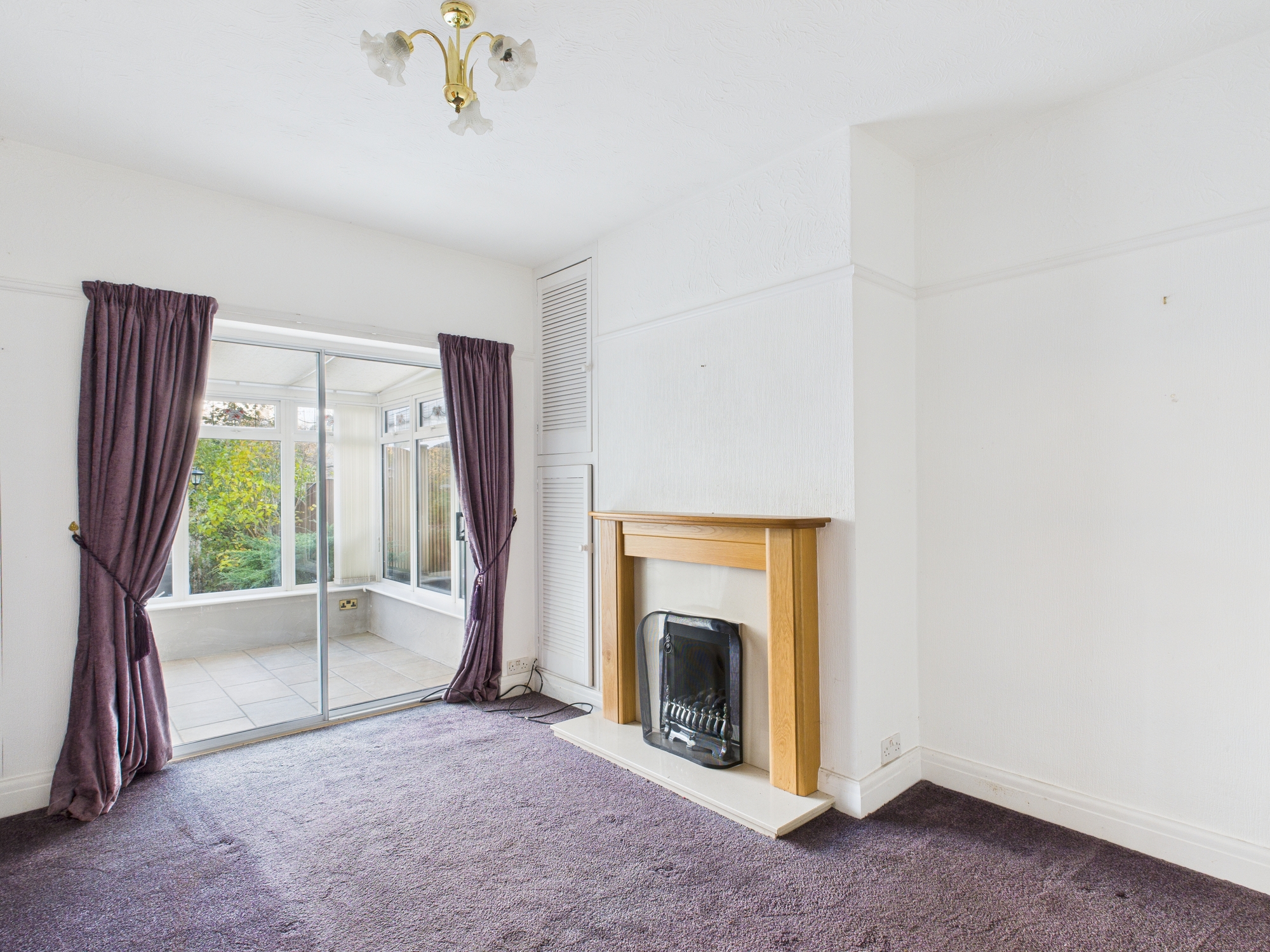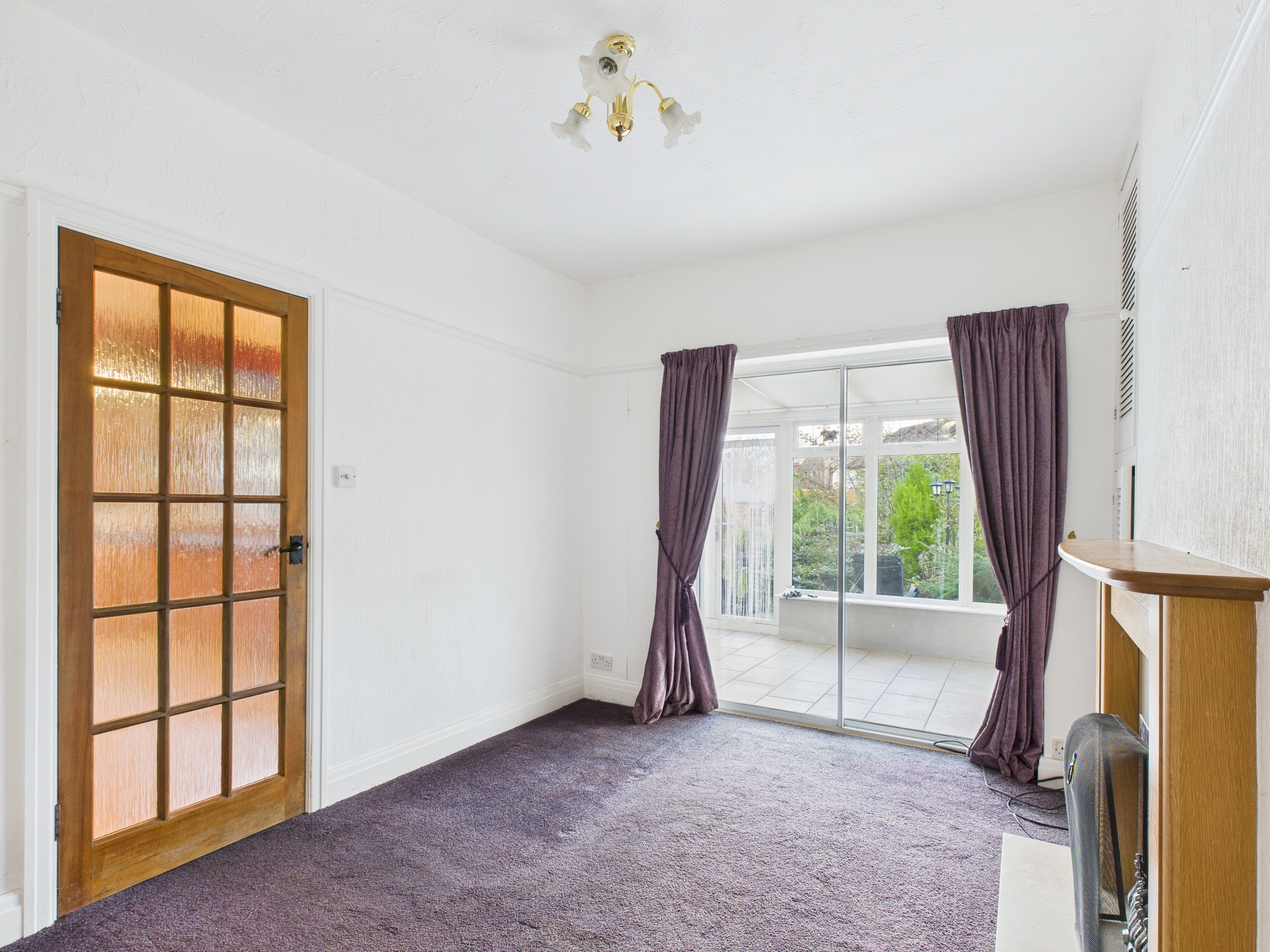 The dining room/second reception has a coal effect gas fire, a cupboard housing the Ideal boiler and sliding patio doors into the sunroom.